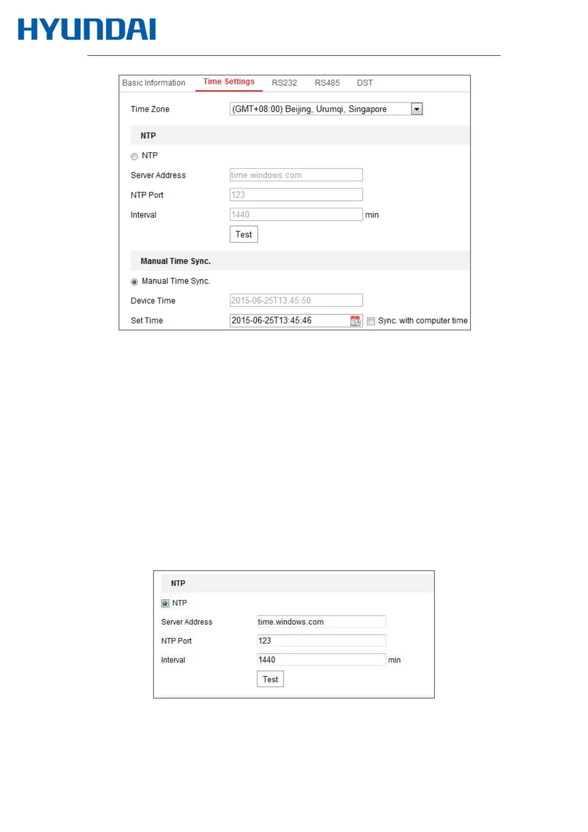 Figure 6-4 Time Settings