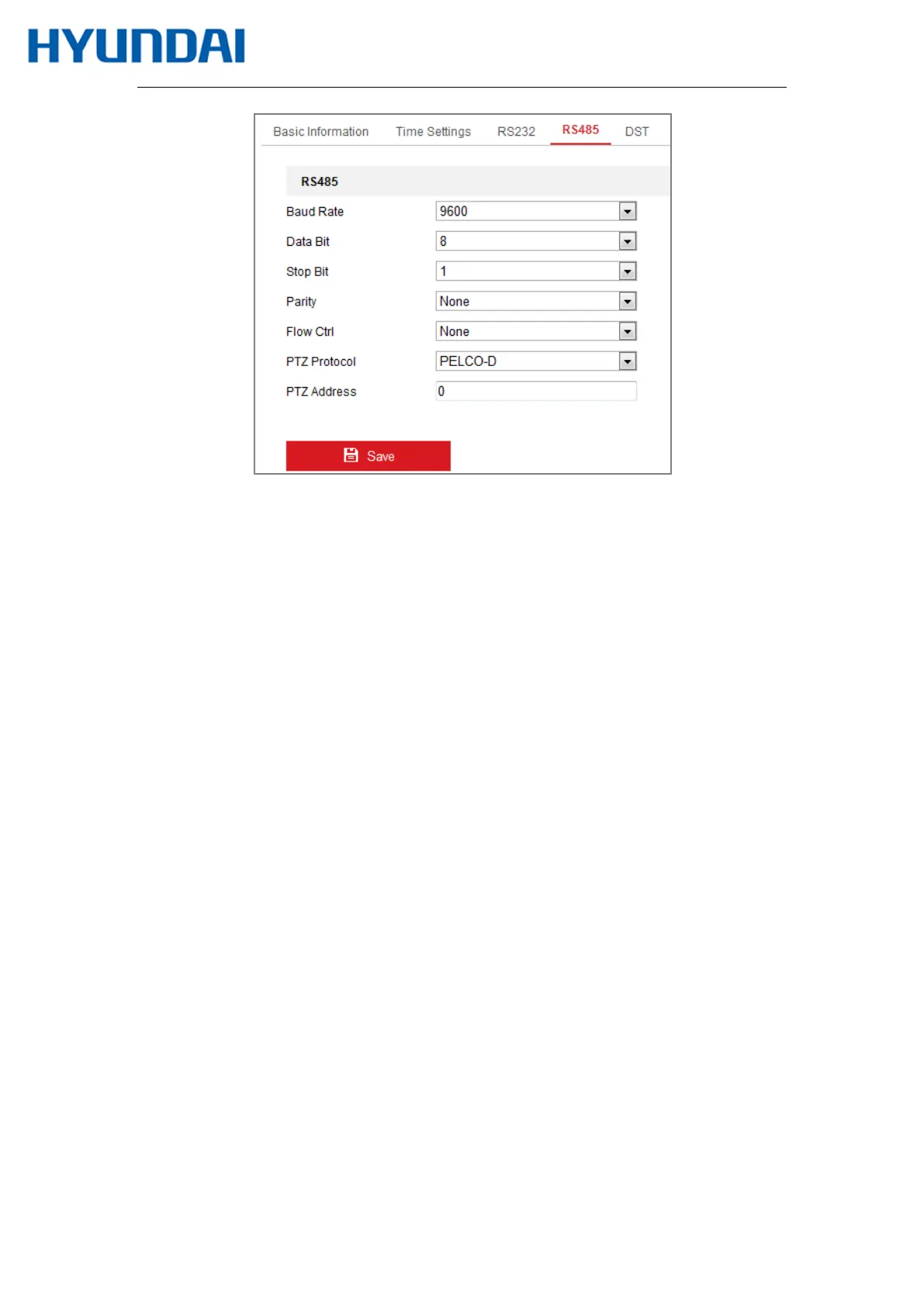 Set the RS485 parameters and click Save to save the settings.