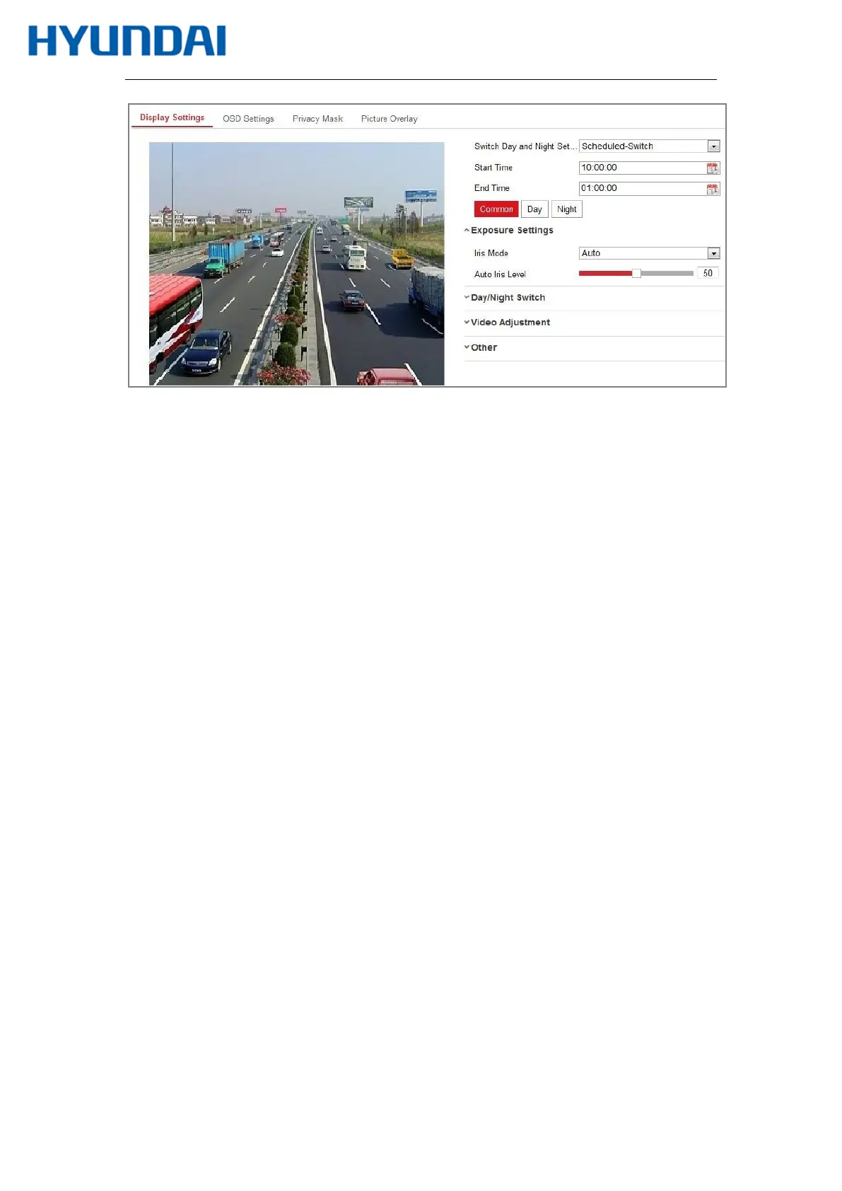 Click Common tab to configure the common parameters applicable to the day mode