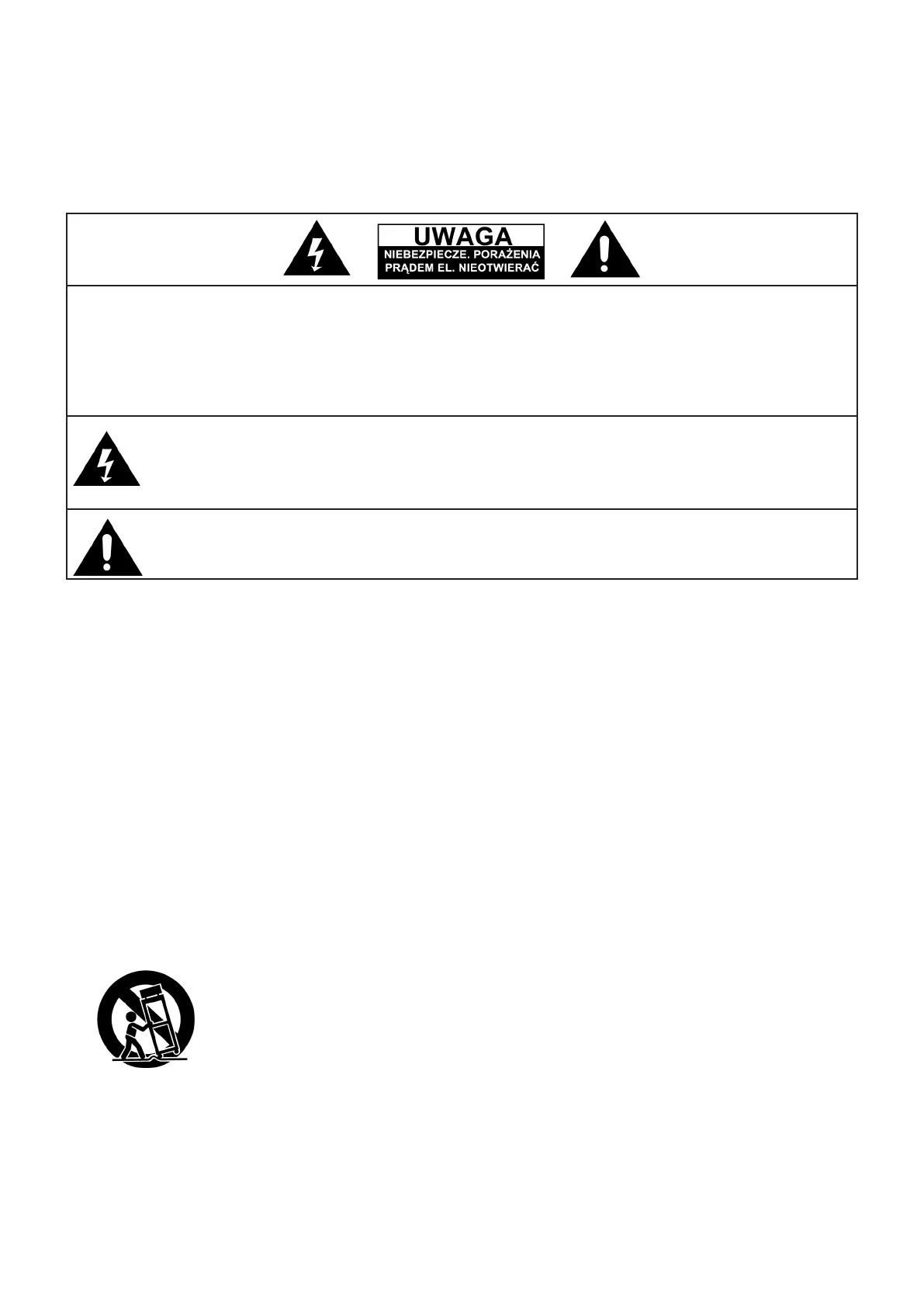 8. Akcesoria – Nie stawiaj urządzenia na niestabilne wózki, stojaki, konsole lub