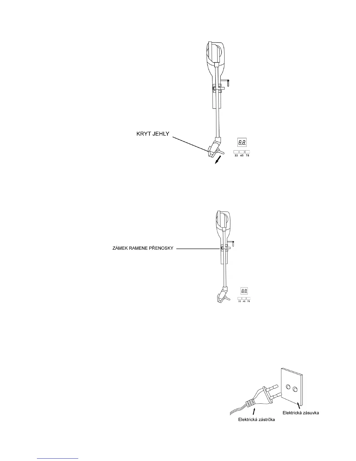 ● Z jehly gramofonu odstraňte neprůhledný bílý plastový kryt jehly tak, že jej vysunete ve směru