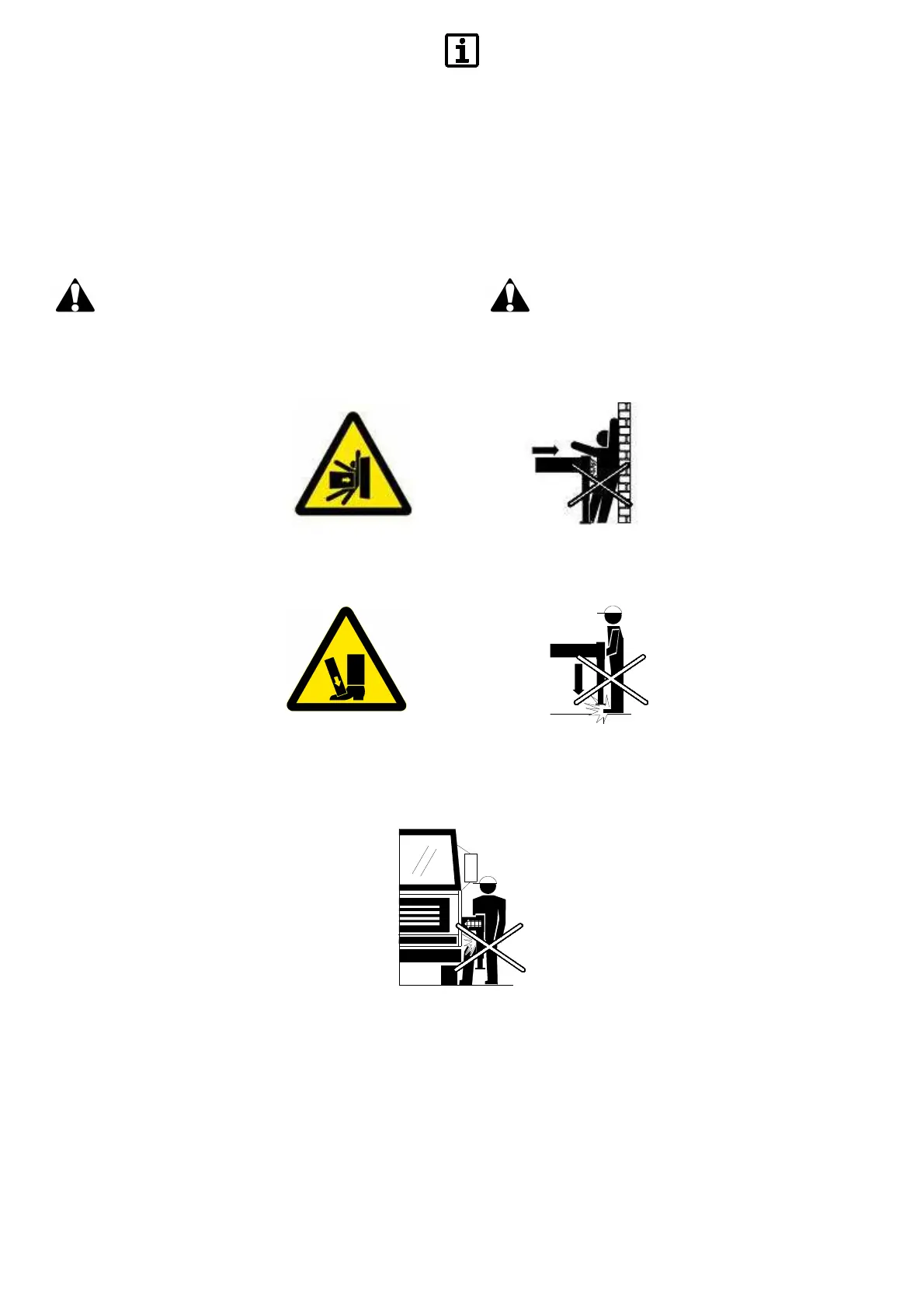 • Crushing and cutting hazard for upper limbs between rods.