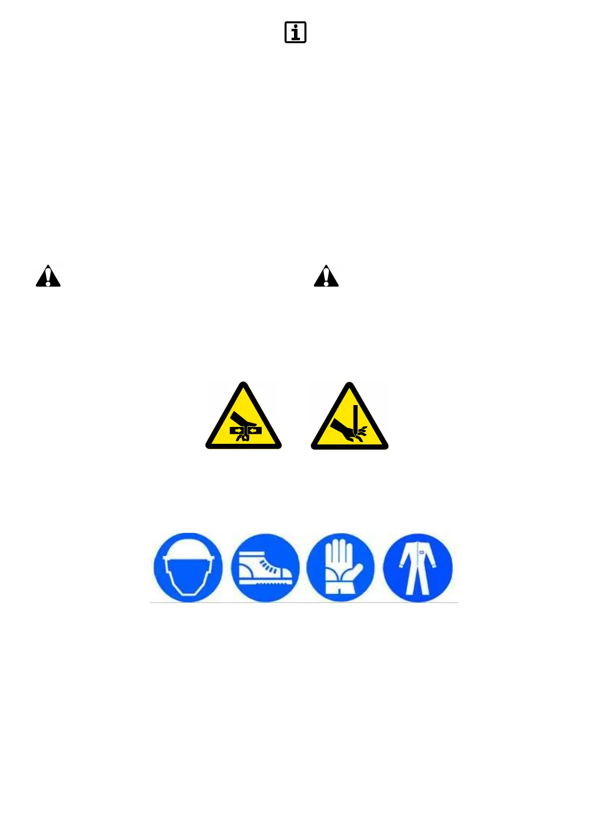 • Crushing and cutting hazard for upper and lower limbs in