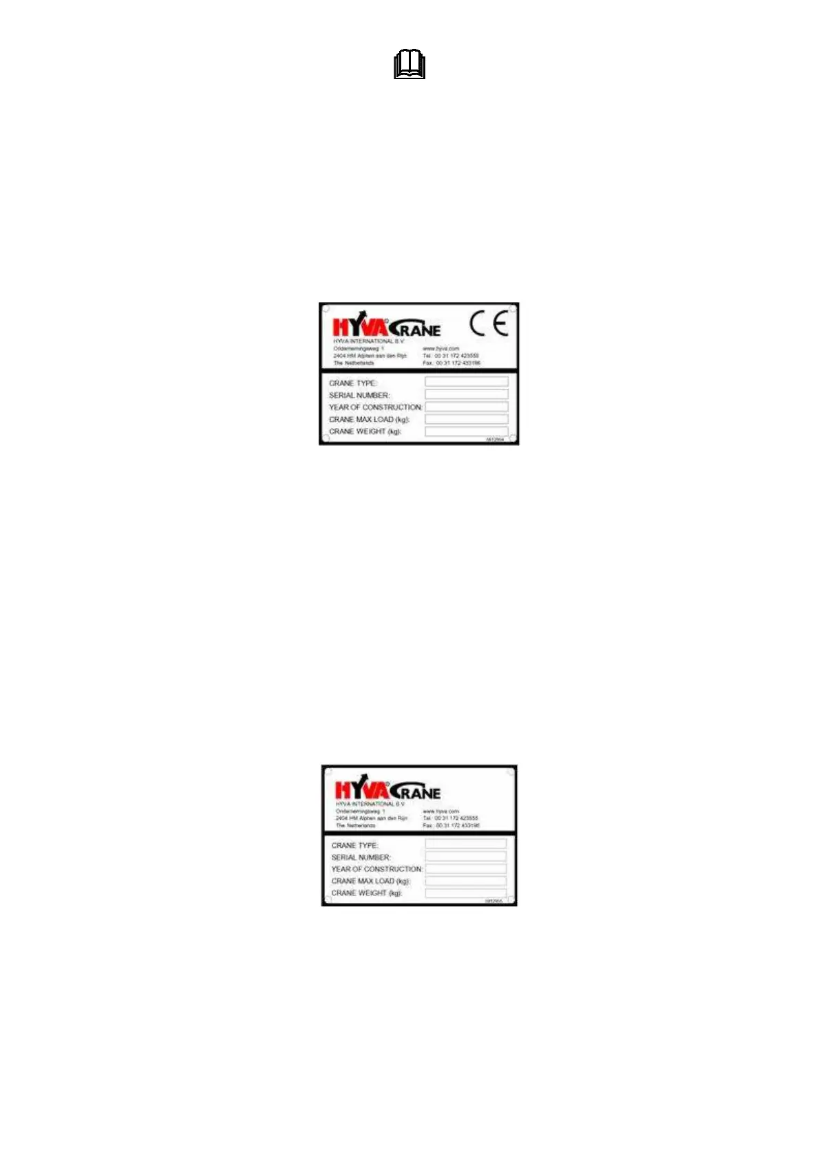 Cranes without the EC mark are fitted with a plate on the