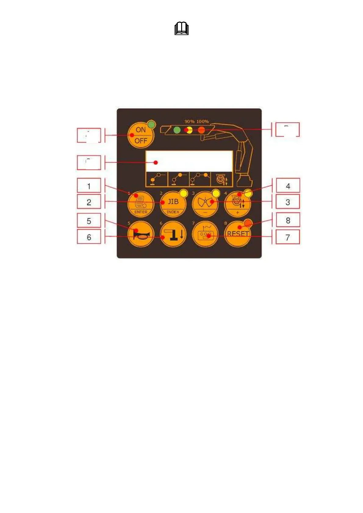- 100%: red pilot light. If on, the maximum lifting capacity is