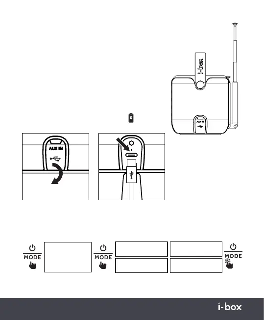 the Power/Mode key toggles through the modes, DAB, FM, BT and AUX. To