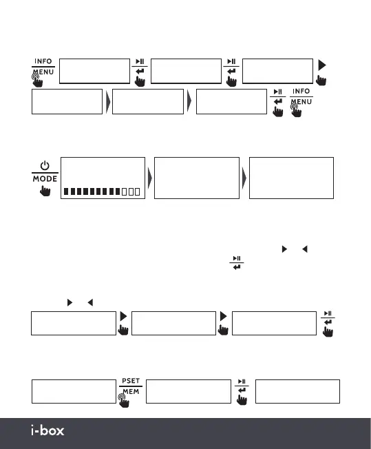 Houd ingedrukt Info / Menu (3) en gebruik dan de knoppen en (5&7)