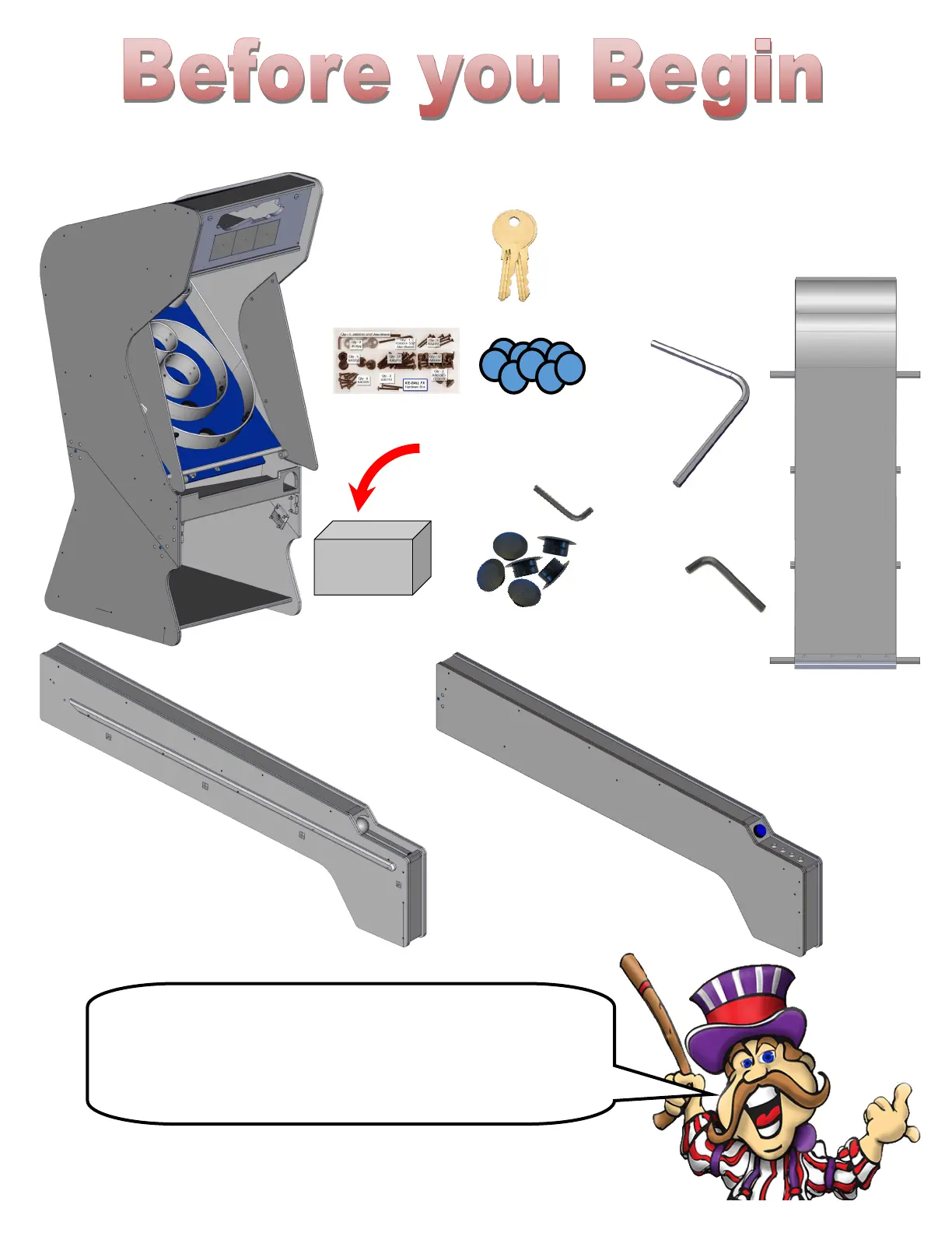 I.C.E Iceball Pro - Preparation for Assembly; Component Identification Guide; Essential Tools and Accessories; Cabinet Structure Overview