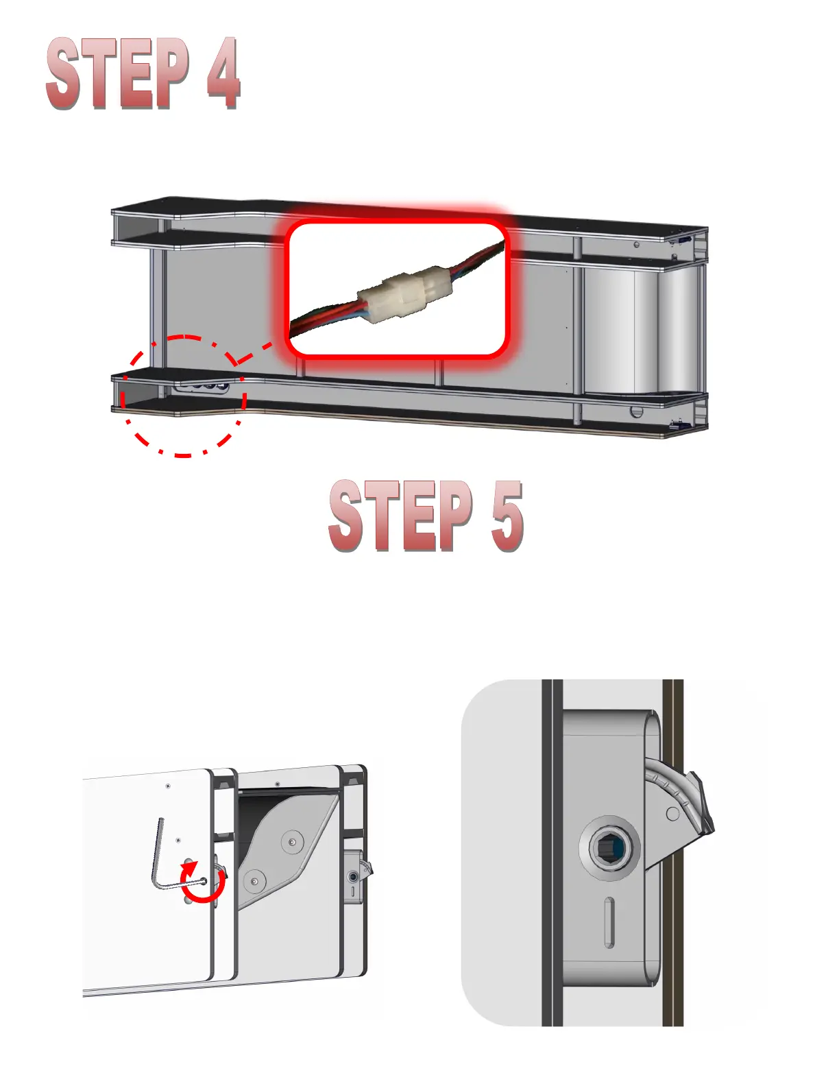 Before flipping the cabinet right side up, connect the RGB harness from the support bar.