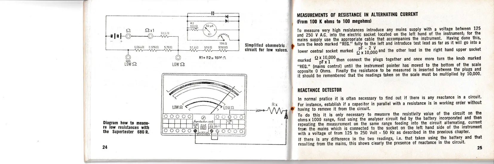I.C.E Supertester 680 R - AC Resistance Measurements (100 K Ohms to 100 Megohms); Reactance Detector Functionality