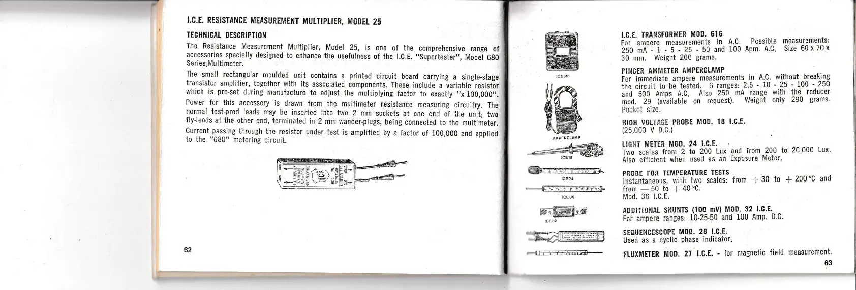 I.C.E Supertester 680 R - Resistance Measurement Multiplier Model 25; Current Measurement Accessories (Transformer, Amperclamp); Specialized Probes and Meters