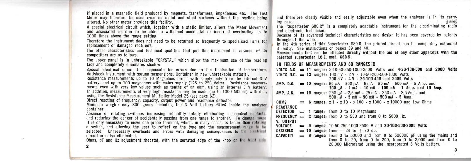 I rangesr 10-50-250-1000-2500 V and