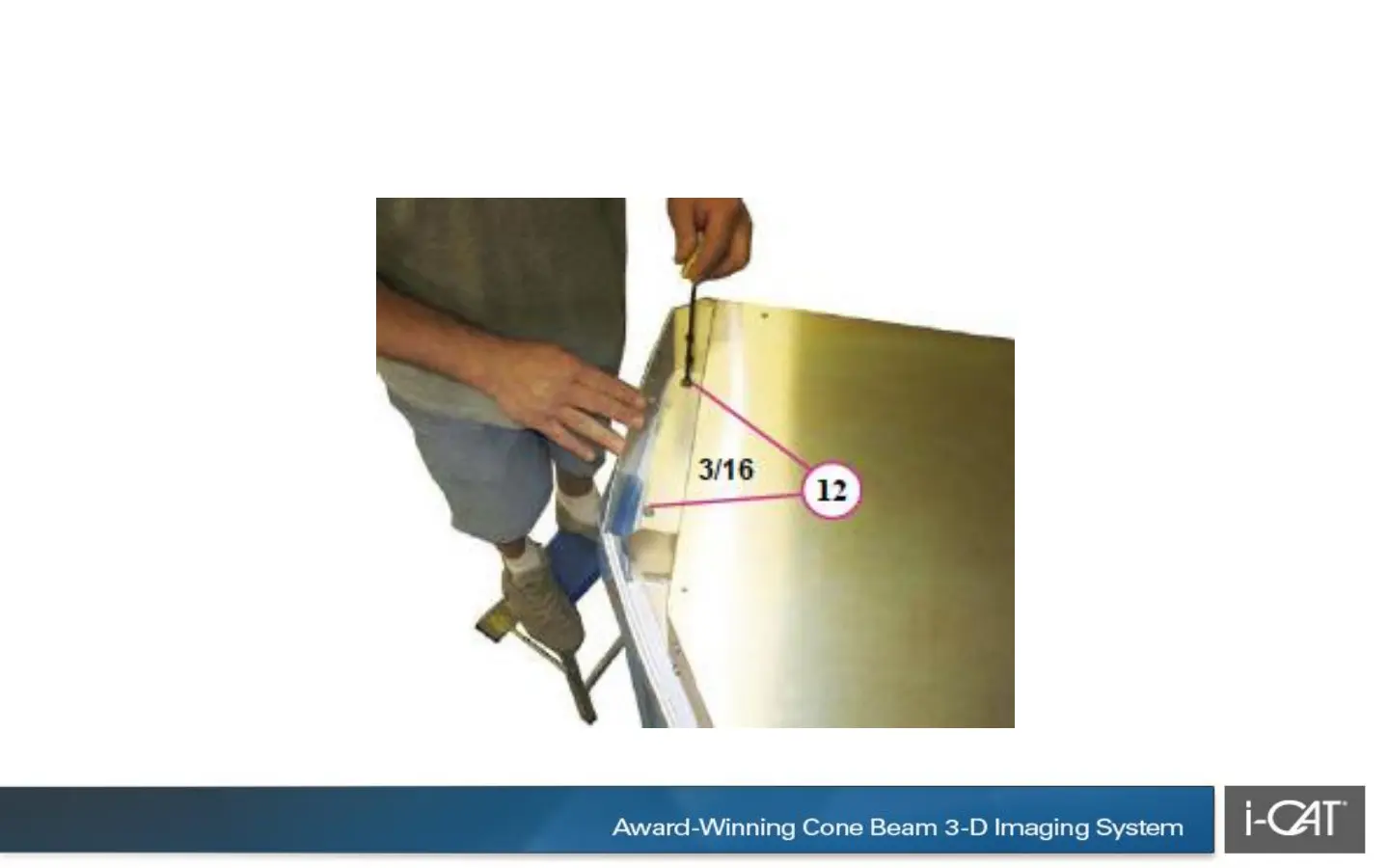 12. From top of scanner, secure overhead with mounting hardware, two SHCS 1/4-20 x