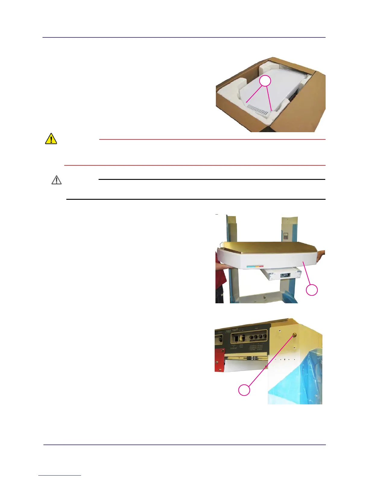 This scanner requires a two person lift. Failure to comply may cause bodily injury. Two adults are