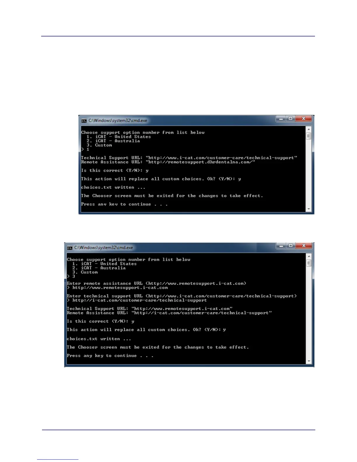 Custom Option - Select this option to enter custom URLs for remote assistance and technical