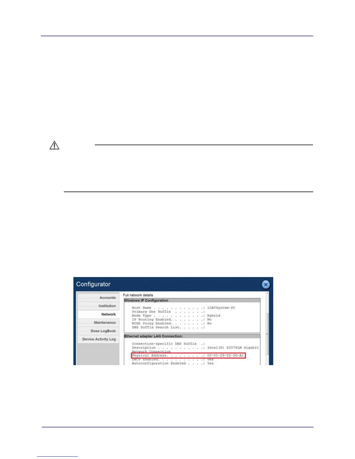3. Locate the Physical Address entry. Record physical address so that the site can assign a fixed