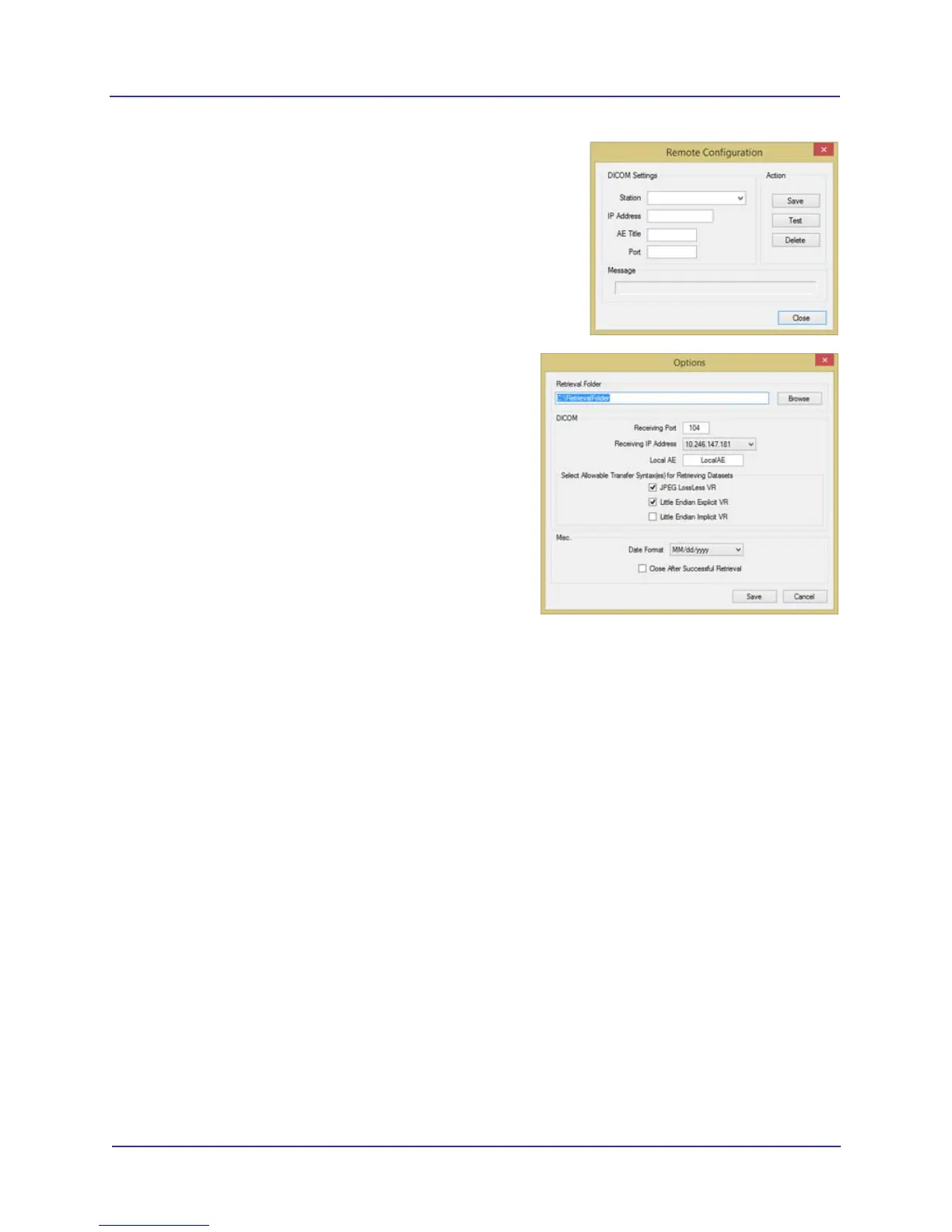 Receiving IP Address, and Local AE title. This