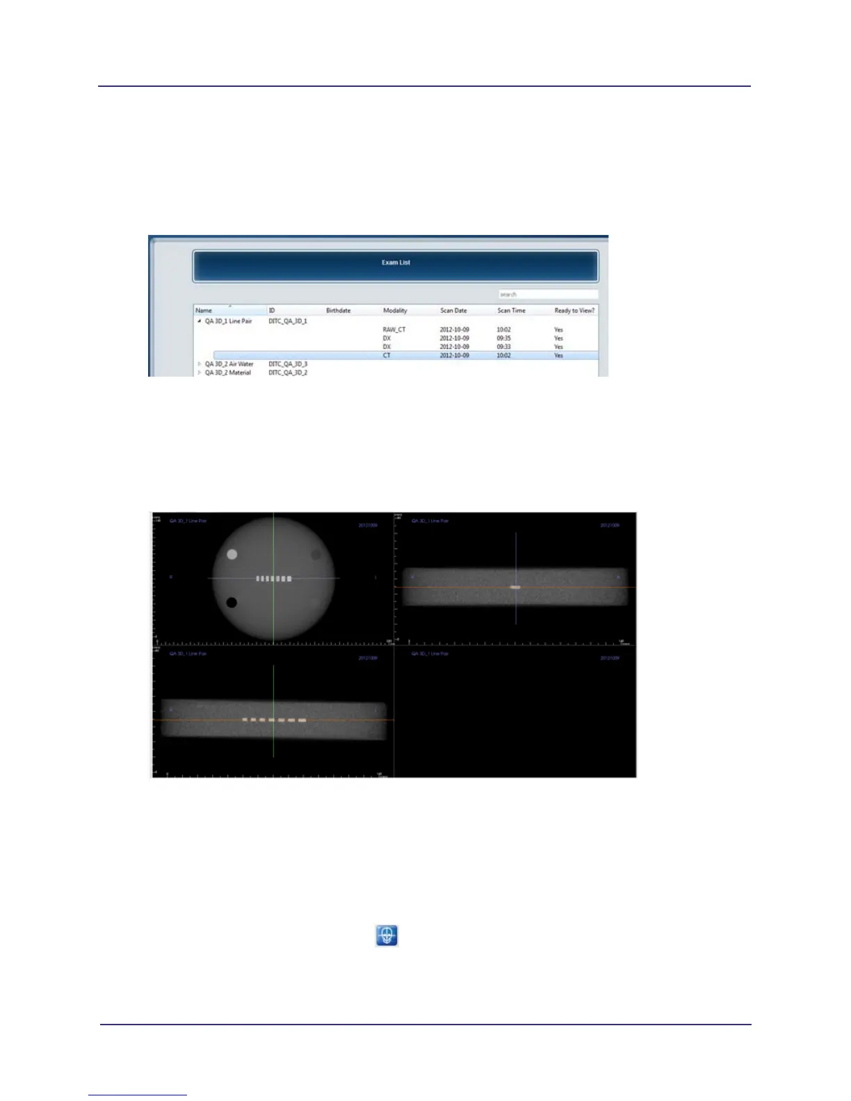 2. On Exam List, locate QA 3D_1 Line Pair exam with most current date. Double-click CT entry to load