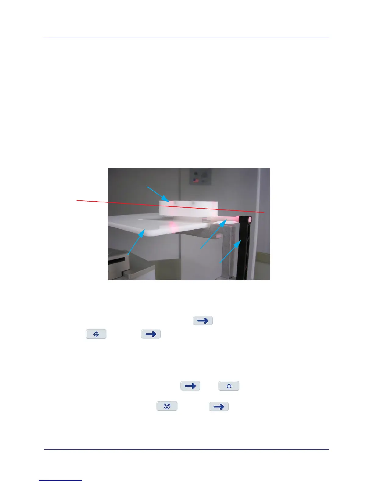 4. Use the Alignment Lasers to position the phantom. Use the horizontal laser to adjust the height of