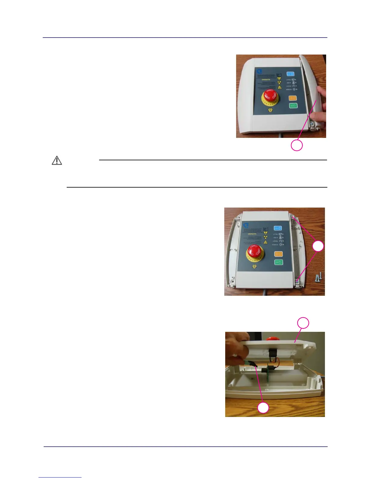 A ribbon cable is connected from the operator control box face panel to the base. Damage to the