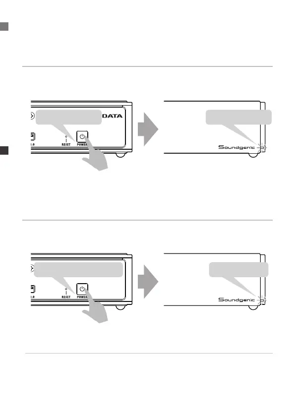 按壓 POWER 約 1 秒 閃綠燈→熄燈