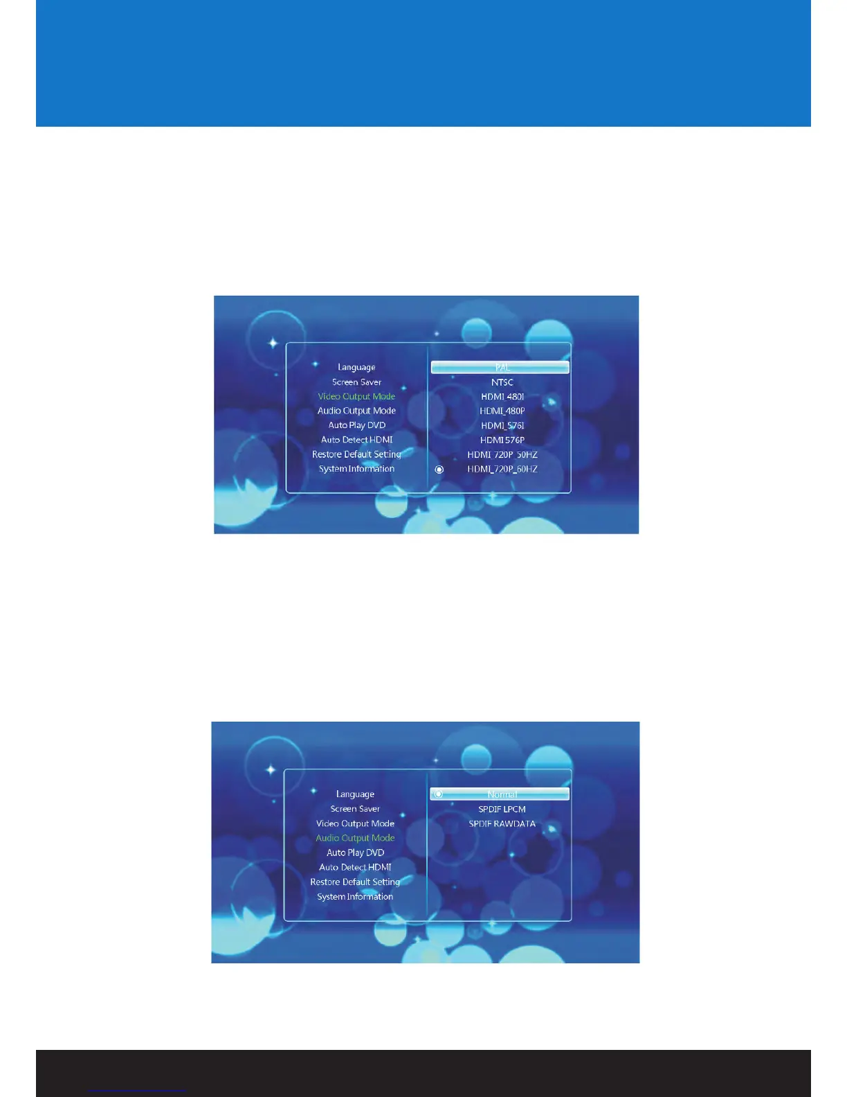 60Hz / HDMI 1080P 24Hz / HDMI 1080P 50Hz / HDMI 1080P 60Hz / HDMI 1080I 50Hz / HDMI 1080I 60Hz.