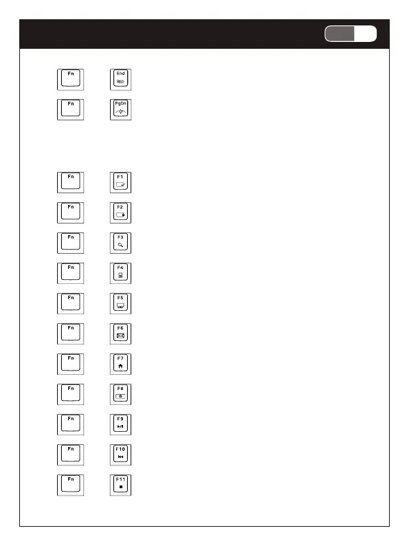 •“ “ + “ “ or “ “:調整按鍵背光特效變化速度