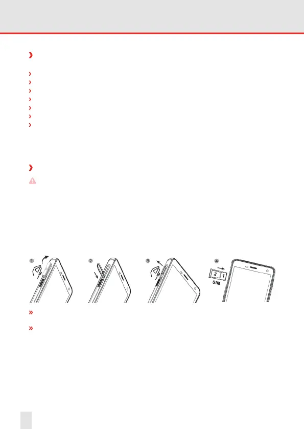 ou de retirer une carte SIM. Ne rechargez pas l‘appareil lors de l‘insertion ou lors du retrait
