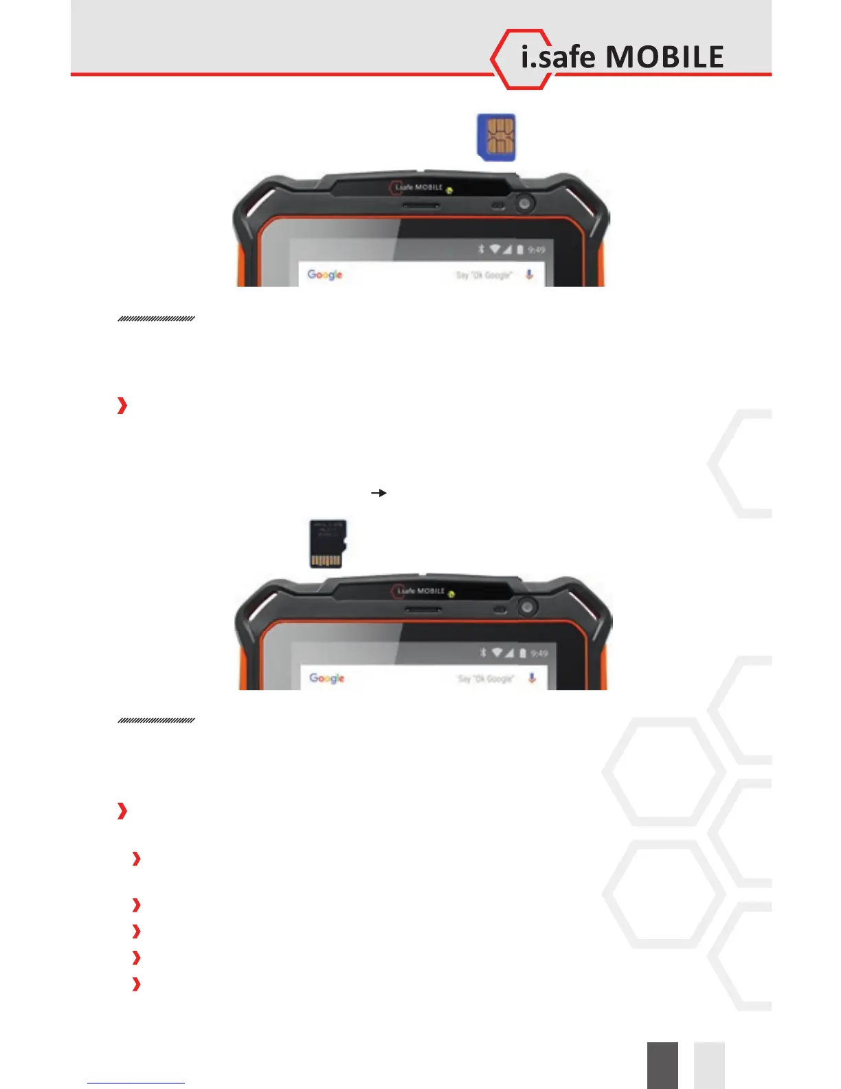 Do only change the SIM card when the device is switched o . Do not try to insert or