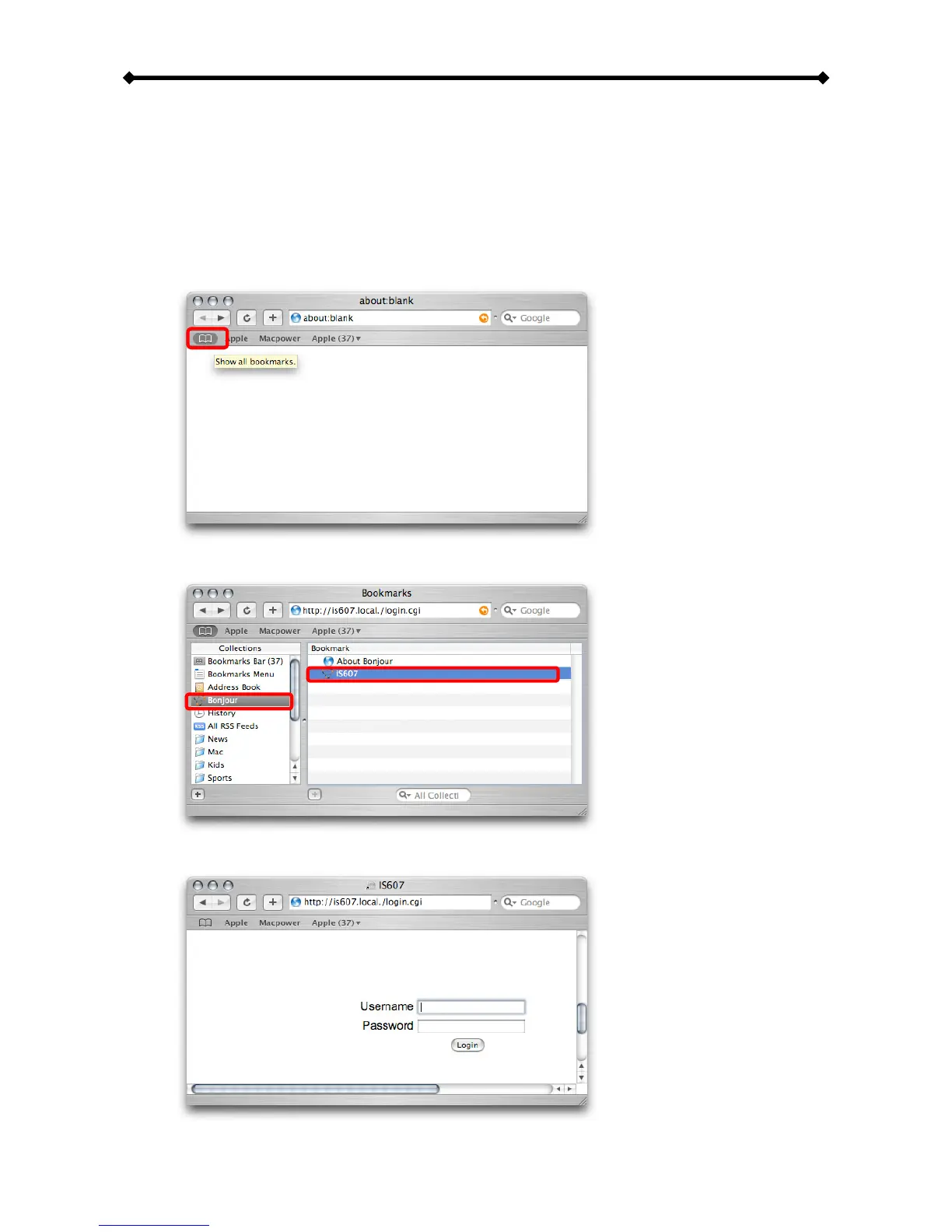 2. Start your web browser (Safari). If not already displayed, click on the bookmarks