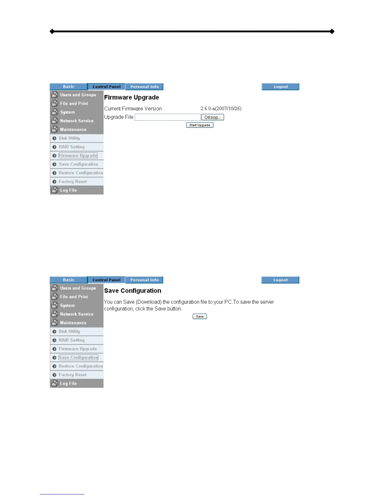 current configuration. Press the “Save” button and save the config.tar file on your computer.