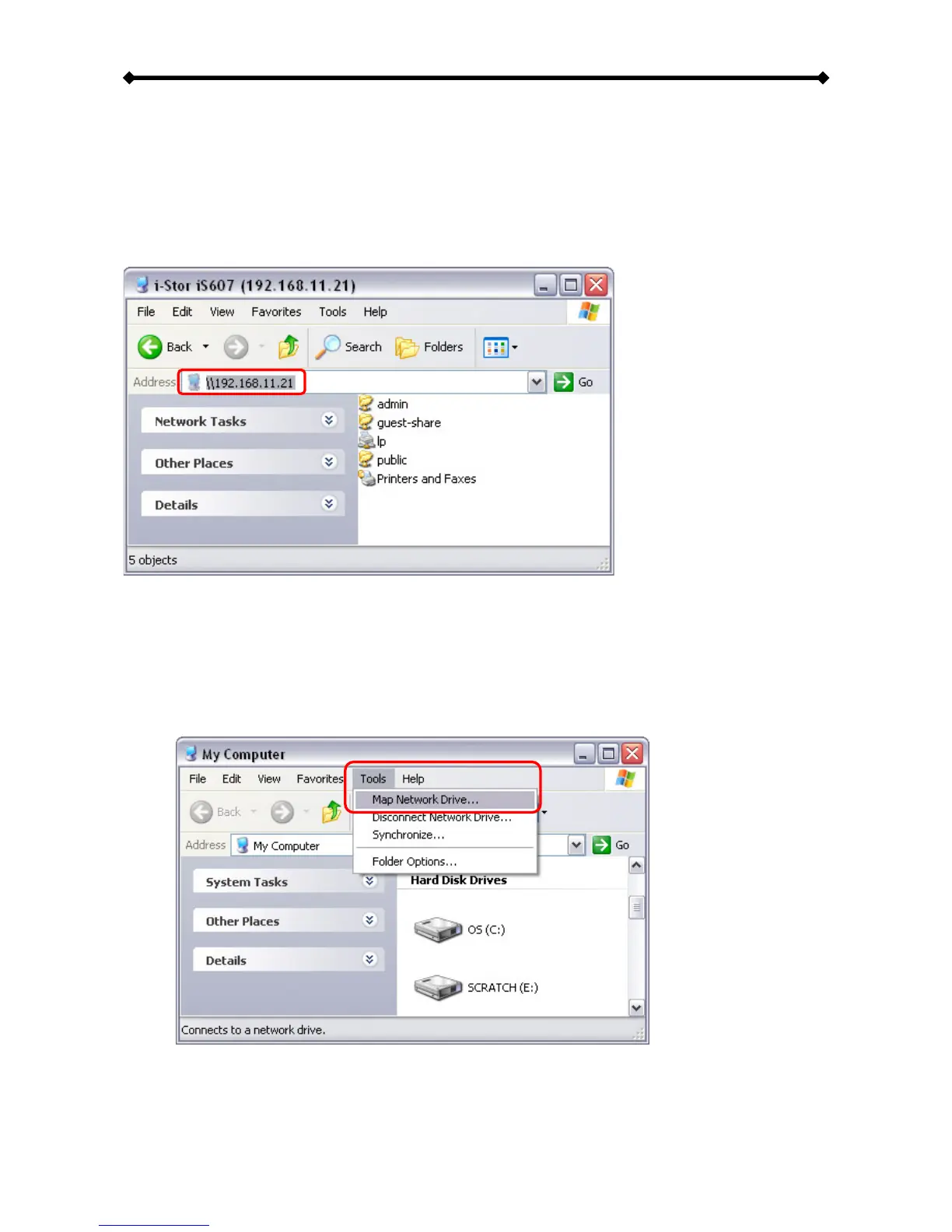 1. Double click on My Computer, go to the Tools menu and select “Map Network