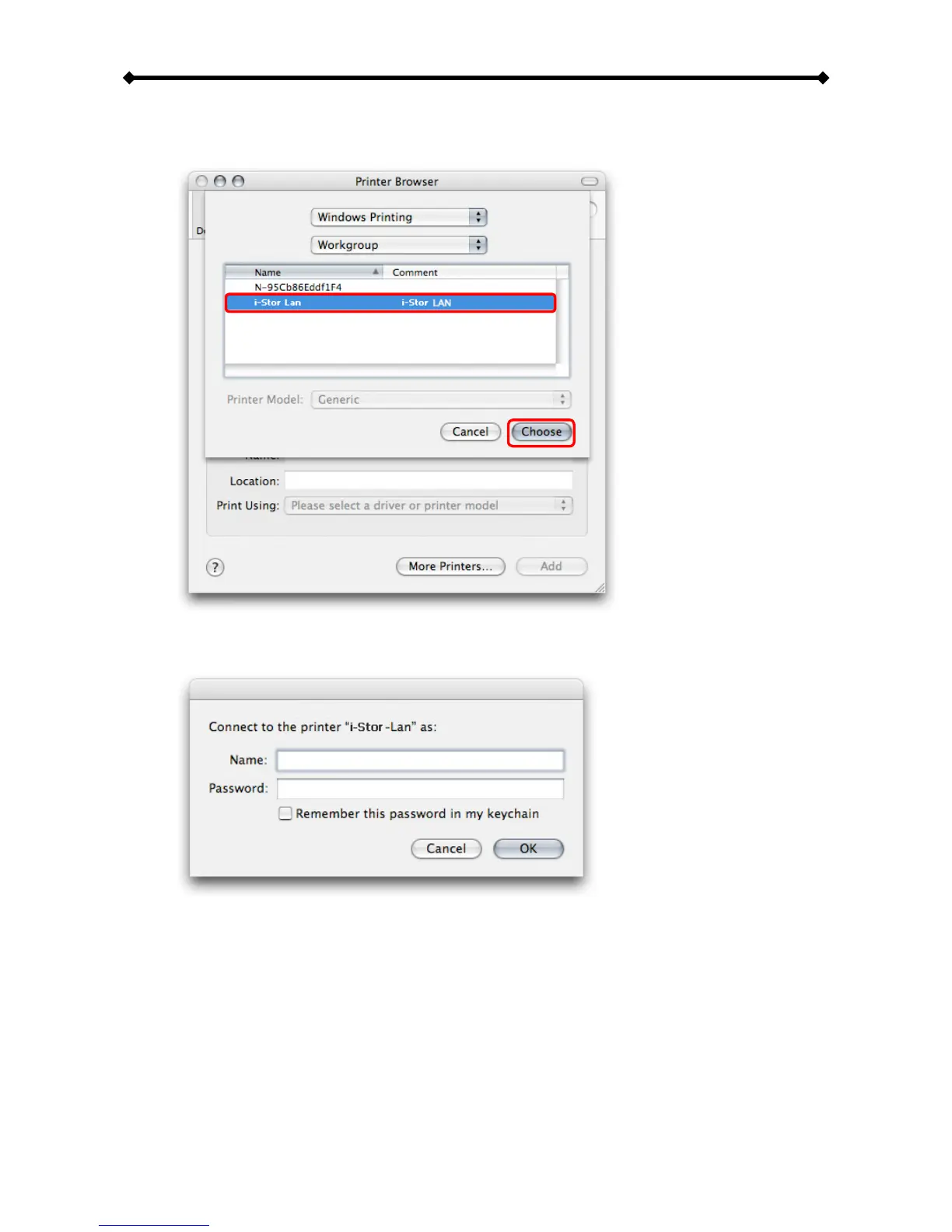 3. Select Windows Printing and the workgroup your computer and i-Stor LAN belong