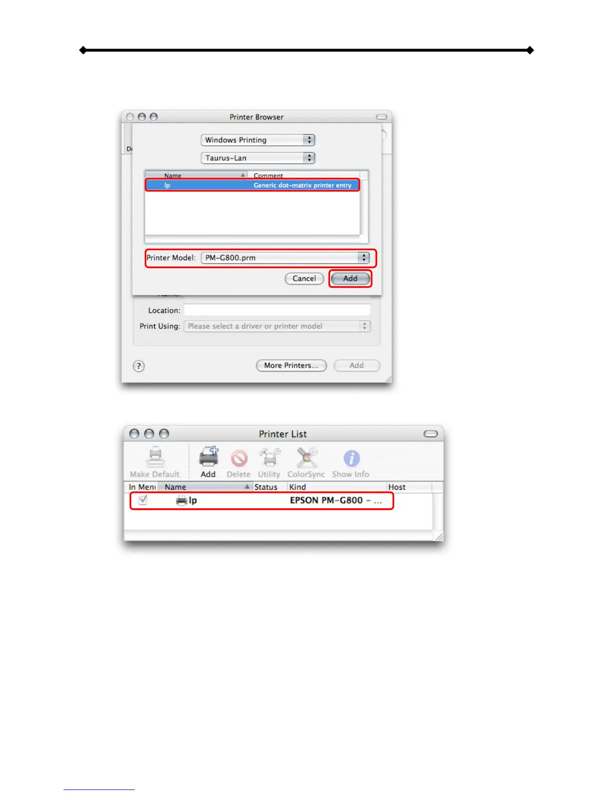 install the correct printer driver and hit Add.