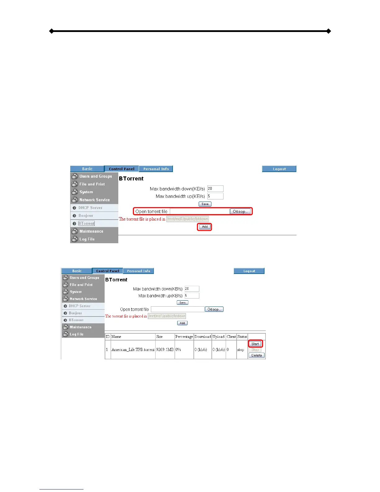 2. Login to the web configuration interface and go to BTorrent in the Network Service