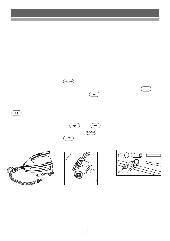 den Druck zu erhöhen oder den Schalter um den Druck abzusenken.