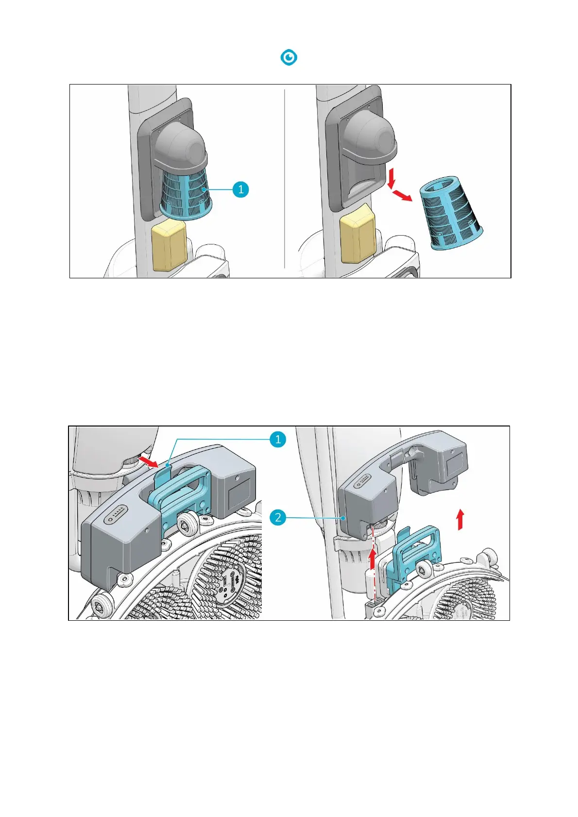 3. Release the blue suction filter (Figure 22, pos 1) from beneath the rubber holder by tilting it