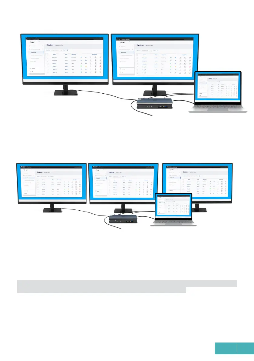 2 monitoriai, prijungti “DisplayPort” / HDMI kabeliais - raiška iki 4K 3840x2160/30 Hz.