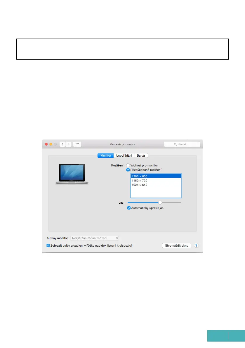 něte jej dle potřeby vzhledem k monitoru Macu. Při volbě Zrcadlit monitory se změní režim