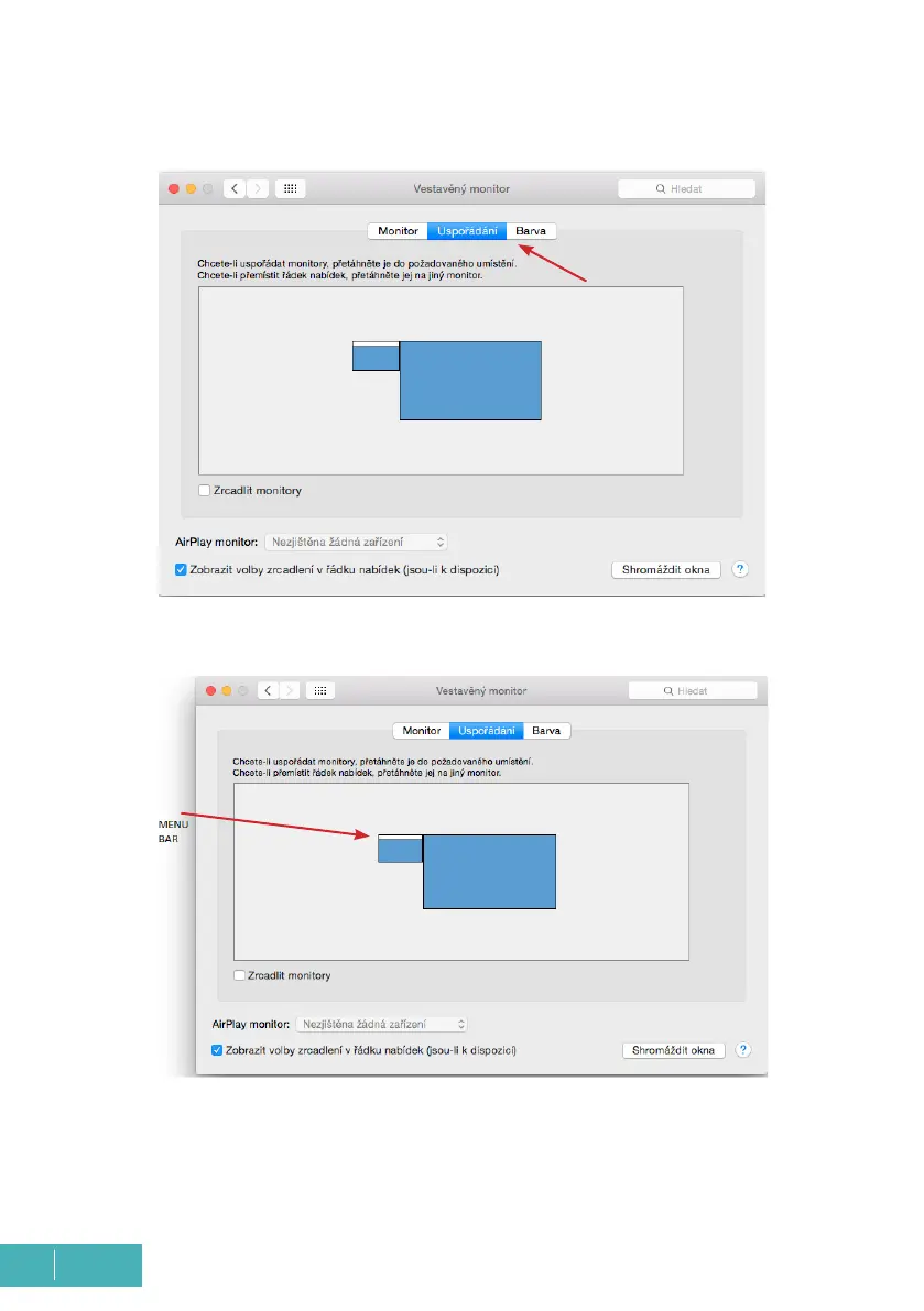 V režimu Rozšířit si můžete volit Hlavní monitor přetažením lišty Menu Bar.