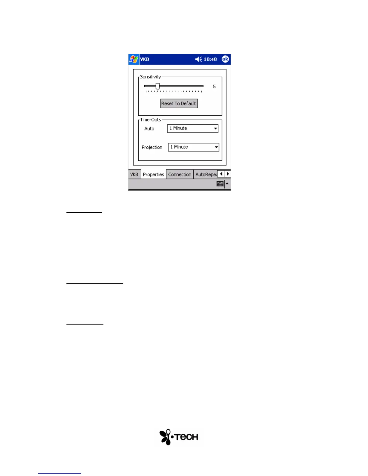 the projected keyboard. Auto Timeout switches off the whole device. When