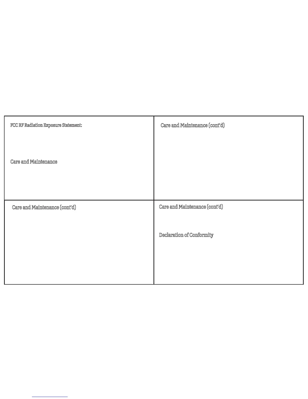 Care and Maintenance (cont’d)