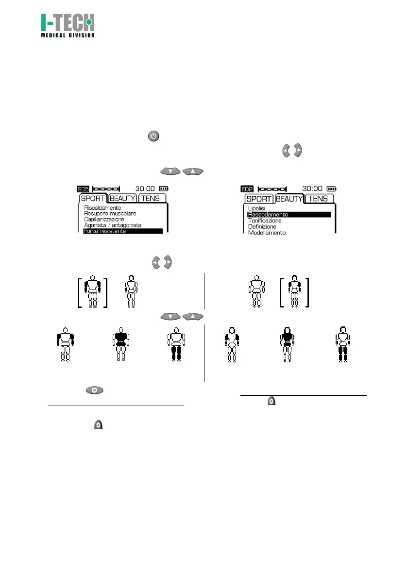 2. Select the program group (Sport, Beauty, Tens) using the button