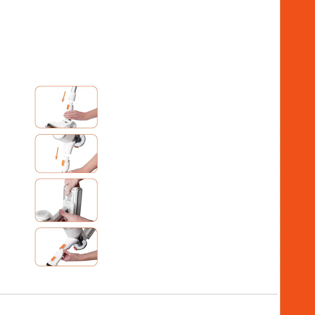 1. Slide the battery into the main unit of the vacuum cleaner.