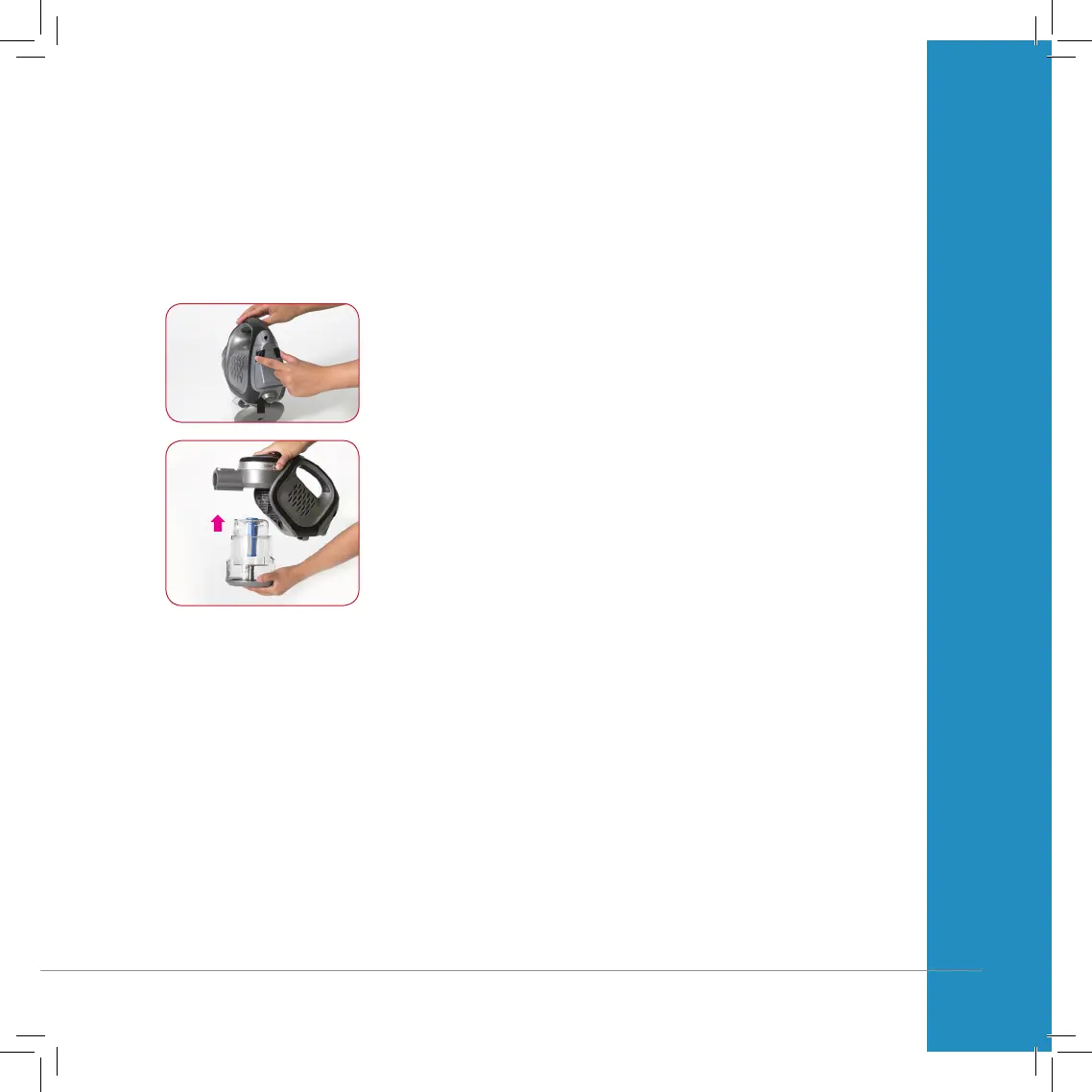 1. Align the dust bin to the cleaner and push upward (as