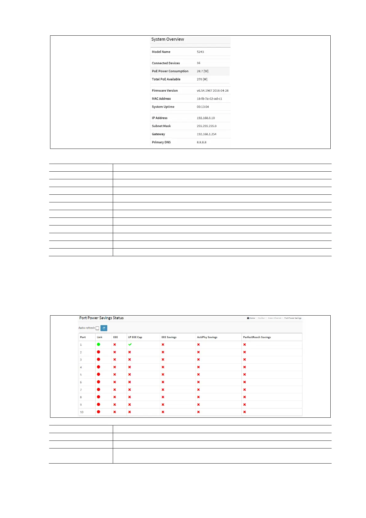 Displays if EEE is enabled for the port (reflects the settings at the Port Power Savings
