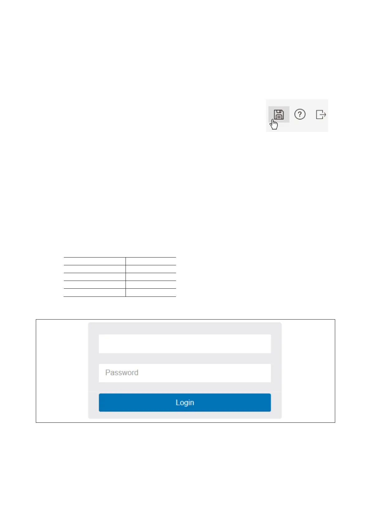 The following table describes the default necessary login Information: