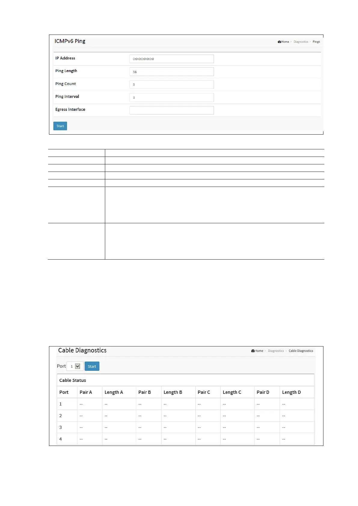 To Configure a Cable Diagnostics test in the web interface: