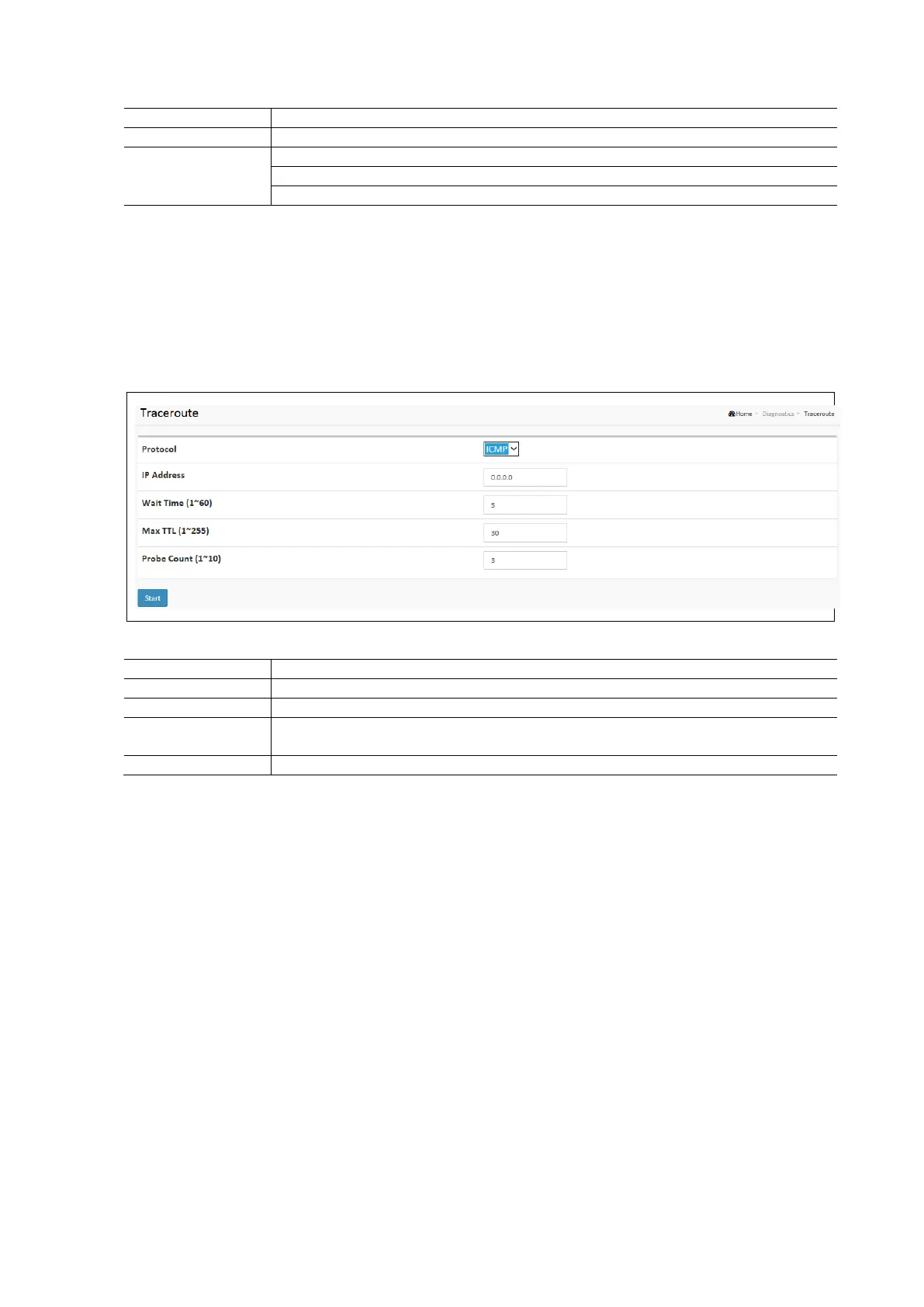 Traceroute Diagnostics Parameters: