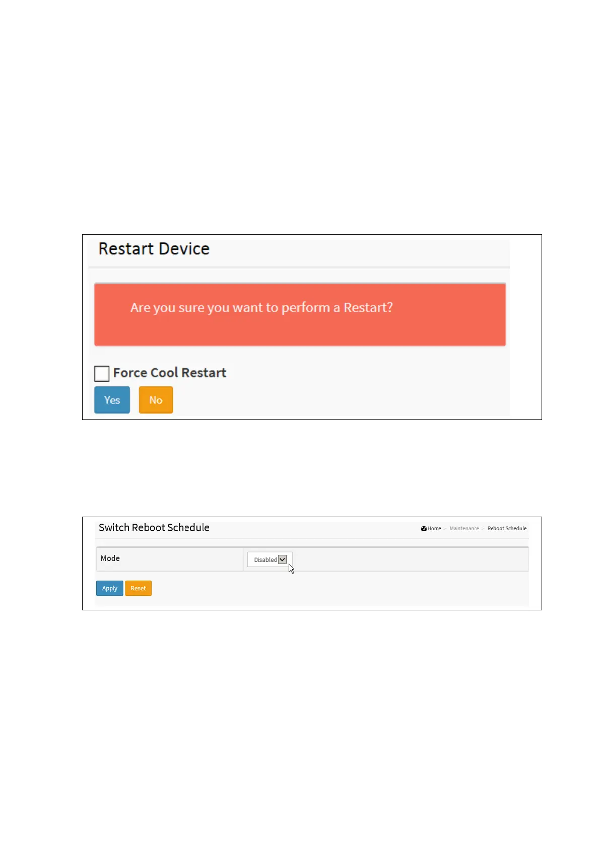 The Switch can be scheduled for regular reboot for maintenance reasons. Once Enabled is selected from the Mode drop